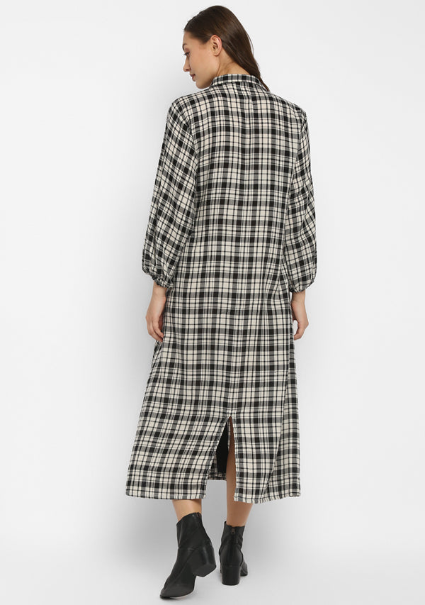 Flannel Pink Blue Checked Nighty Kaftan with Stitch Lines